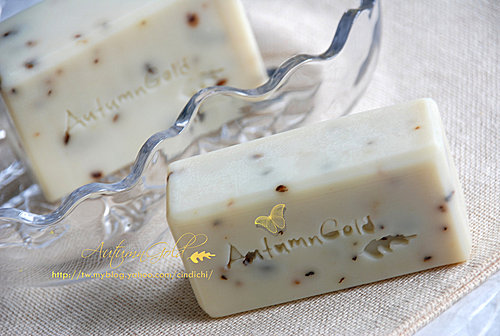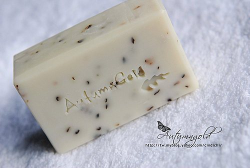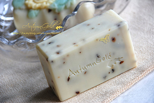 照片上這些簡單的皂,蓋上最近刻的皂章,好像比較不那麼單調了。這皂章是跟大陸團的,原本想用我照片上的字體,因為太花俏,對方說蓋出來的效果可能會不理想,所以我換了這個字體,也還不錯看。如何?不賴吧?做出來的皂看起來有比較專業嗎?