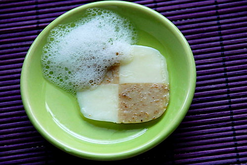 加艾草和薰衣草的部份洗起來會磨皮,就當作去角質吧:P。