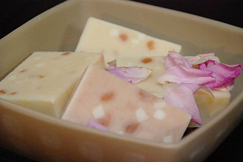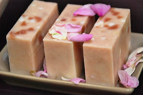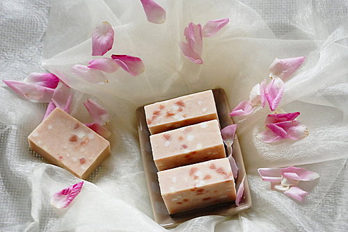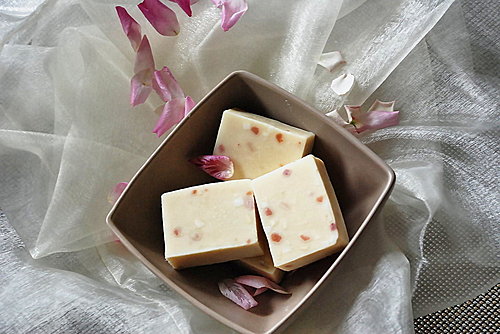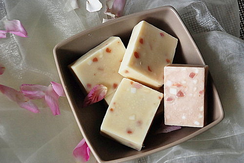 - 添加碎皂丁、粉紅石泥少許