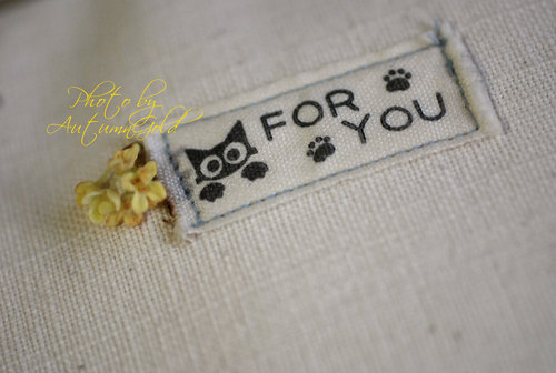 我特地挑了有貓咪圖樣的布標貼縫在包上,算是彌補不讓她養貓的愧疚(