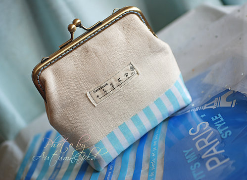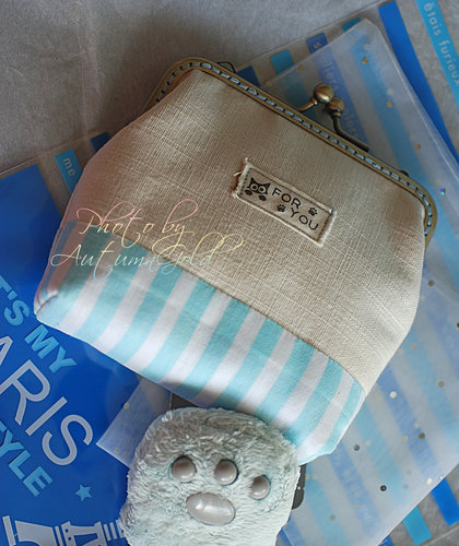 因為小姪女喜歡Miyaa 送我的那款口金包,所以讓姪女自己選布的花色,我模倣Miyaa的拼接方式,幫她做了這個包,當做送她的生日禮。