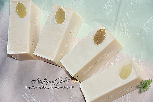 輕鬆入模後,不像以往累到虛脫,反而感覺有點空虛,就在一堆皂球、皂花中翻撿出幾片皂葉來裝飾。我抖著手把這些又小又薄的葉片輕輕擺上去,深怕激起一絲漣漪,又深怕小葉兒一個閃失,倒栽蔥沉入皂液中,結果有幾片的頭還是潛水去了@@!