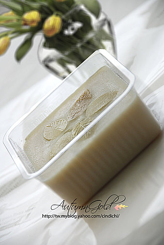 很喜歡椰油家事皂那種雪白潔淨的模樣,感覺看起來就是可以把碗盤洗得亮晶晶,把衣服洗得潔白畢挺!可是這回買的椰子油顏色好像比較深,結凍後看起來像棕櫚油,做出來的顏色不是雪白,而是米白...不過,也可能是我加了甜橙精油的緣故吧!